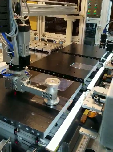 機械手從料盤中吸取產品,由校正臺初校正,再由機械手吸取到自動對位平臺,CCD視頻系統將ITO線路與檢測探針進行精準對位,對位后對夾測試,測試NG與良品進行分盤擺放。